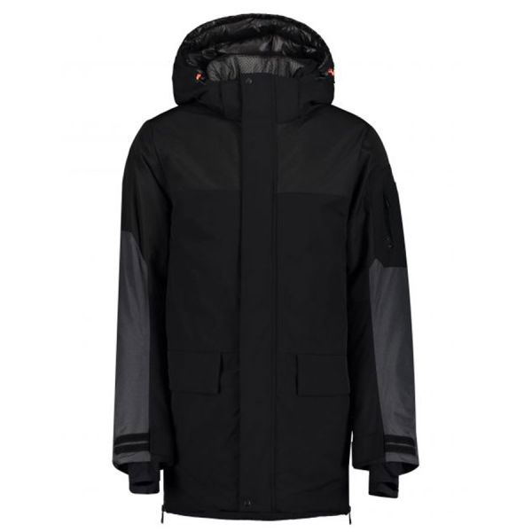 Icepeak parka for men. The fabric surface has been treated with a water-repellent finish. Made of a 2-layer fabric, in which a waterproof membrane is bonded to a multifunctional material. This A.W.S. EXTREME product meets the needs of active outdoor people even in extreme conditions. Structural details and protective materials make the product functional in every situation, no matter the weather. The 4-way stretch material stretches to all directions giving a maximum freedom of movement. Technical values of the fabric: 10 000 mm \ 10 000 mvp (water column \ breathability). Down-imitation-filled lining. Zipped inner pocket. Detachable hood. Ski pass pocket. Inner lycra cuffs with thumb holes. Articulated elbow construction. Long side zips. Removable snow gaiter with anti-slip silicone band. Two-way front zip. Adjustable hem, hood and cuffs. Comfortable inner collar. Water-repellent pocket zips..