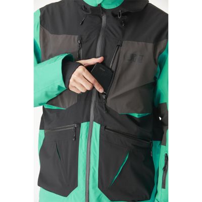 The stretch 2-layer Naikoon Jacket is a lightweight freeride jacket that can literally do everything. Eco-designed with recycled Circular polyester, it features a 2K/2K membrane for unmatched waterproof breathability, reinforced with a PFC-free durable water repellent treatment and waterproof zips. Designed for breathability, the pit zips offer additional ventilation when playing hard in the powder. For enhanced protection and fit, the hood, cuffs, and hem are all adjustable, while the stretchy hybrid multi-density knit provides enhanced freedom of movement. Cut for a modern fit, this jacket comes equipped with smart, functional pockets and detailing. Our Naikoon Jacket allows you to effortlessly switch from shredding in the park to riding untracked lines without a second thought.